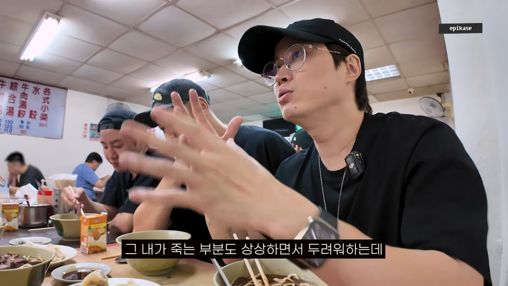 While eating beef noodle soup in Taipei, Tablo shared, “I guess this could also be a matter of personal preference Man, I like how clean it tastes Earlier, what I was trying to say about death was, during the seasons when we tour a lot, I write down where all my assets are and stuff— if something happens and I'm gone, what needs to be done, for Hyejung and Haru to be able to take care of themselves I write all that stuff down.”