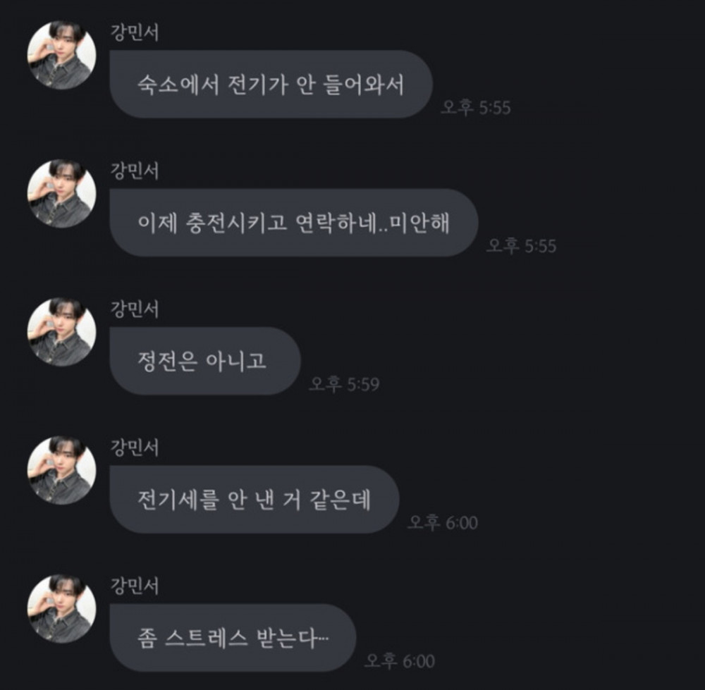Through the fan communication platform Bubble, Kang Minseo shared, “The electricity at the dorm isn’t working, so I’m charging my phone and getting in touch now… sorry.” He added, “It’s not a blackout, but it seems like the electricity bill hasn’t been paid, which is a bit stressful…”