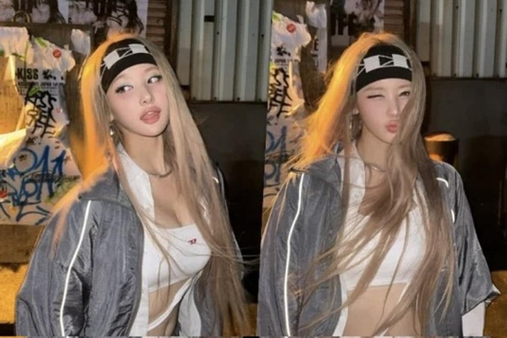 In the photos, Belle pairs a cropped top with a sporty training jacket, showcasing both a bold and athletic vibe. Her headband hairstyle and sharp eye makeup complete the confident streetwear aesthetic.