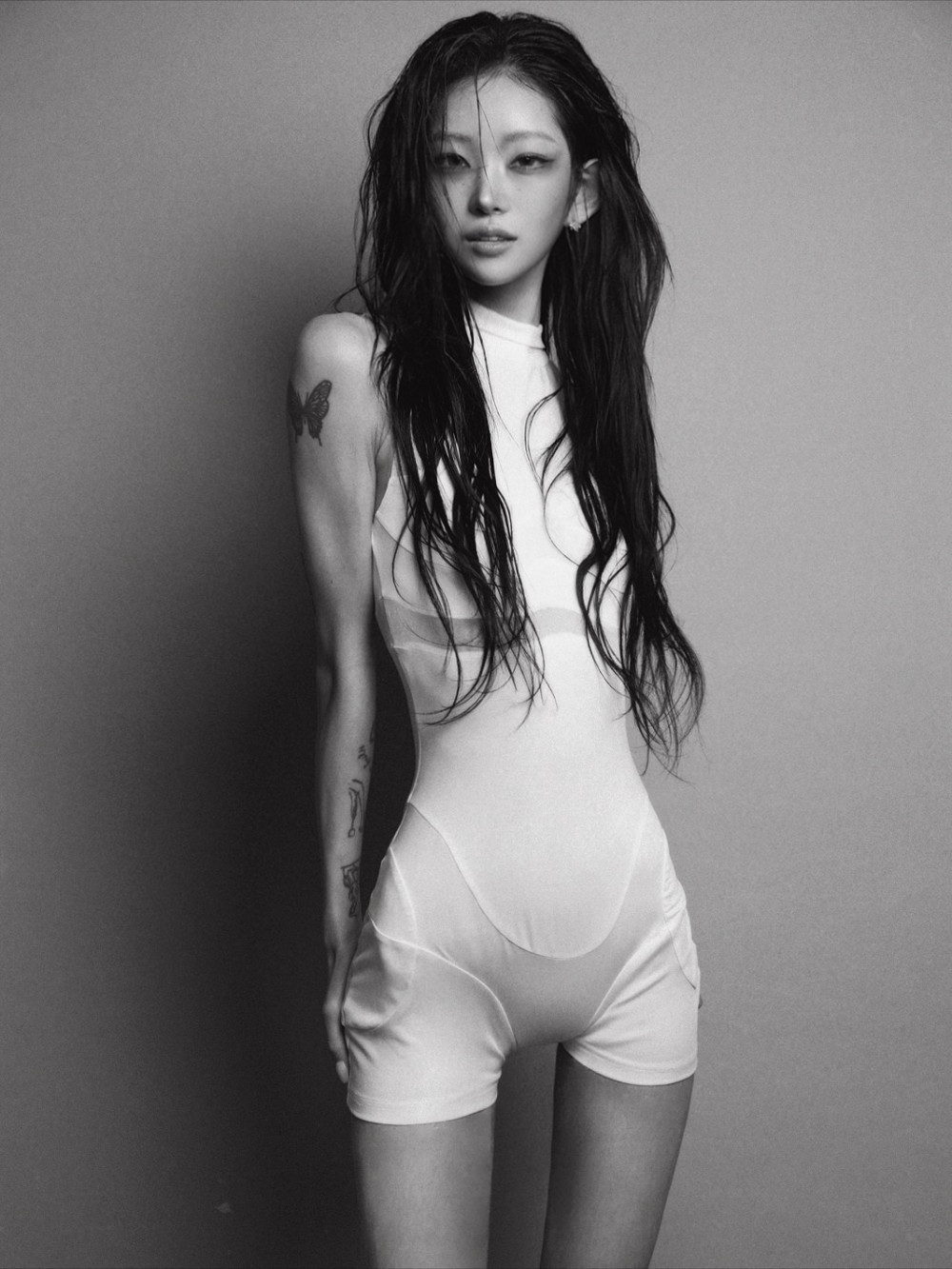 On November 19, Choi shared a full-body photo on Instagram, showcasing herself in a white bodysuit with a dreamy gaze. The look, completed with wet-style hair and bold smoky makeup, immediately captured the attention of netizens.