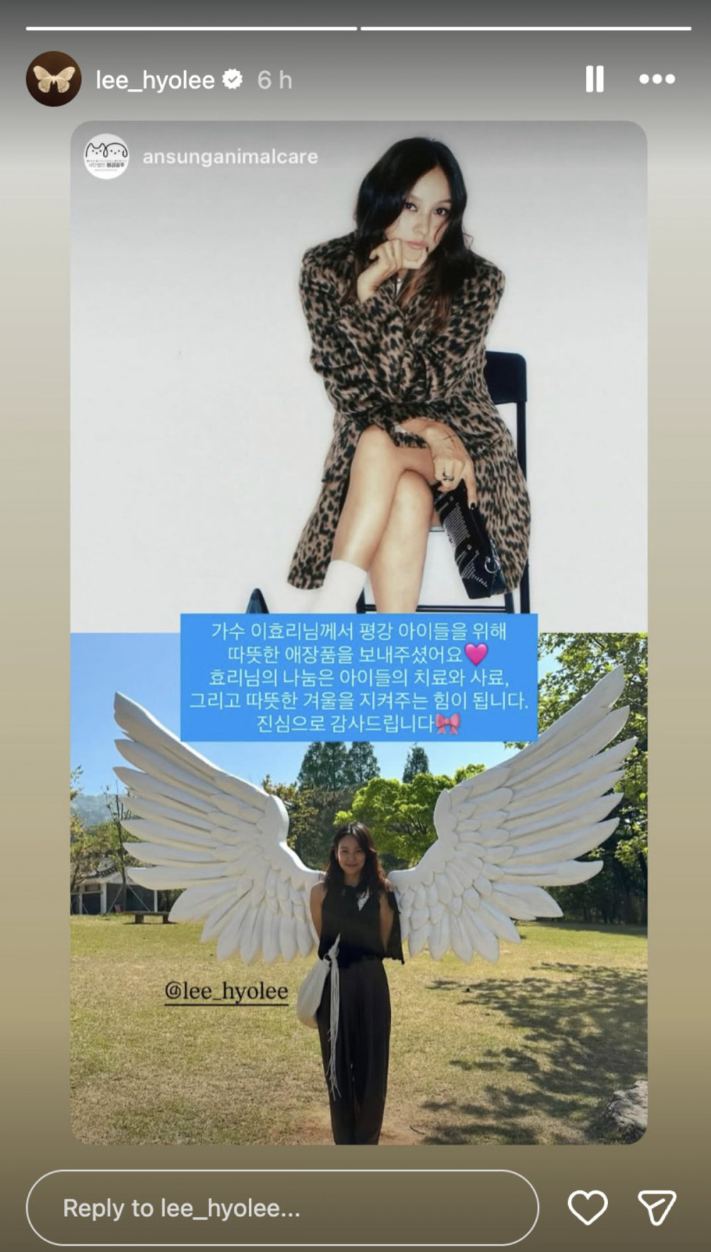 According to the shelter, “Singer Lee Hyori sent us a heartfelt personal item for the Pyonggang pups. Her generosity will help support their treatment, food, and a warm winter. We are truly grateful.” The post highlighted Lee Hyori’s continued dedication to animal welfare.