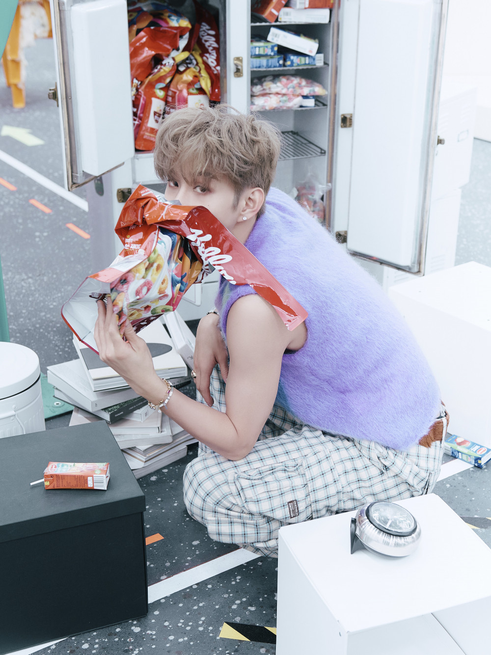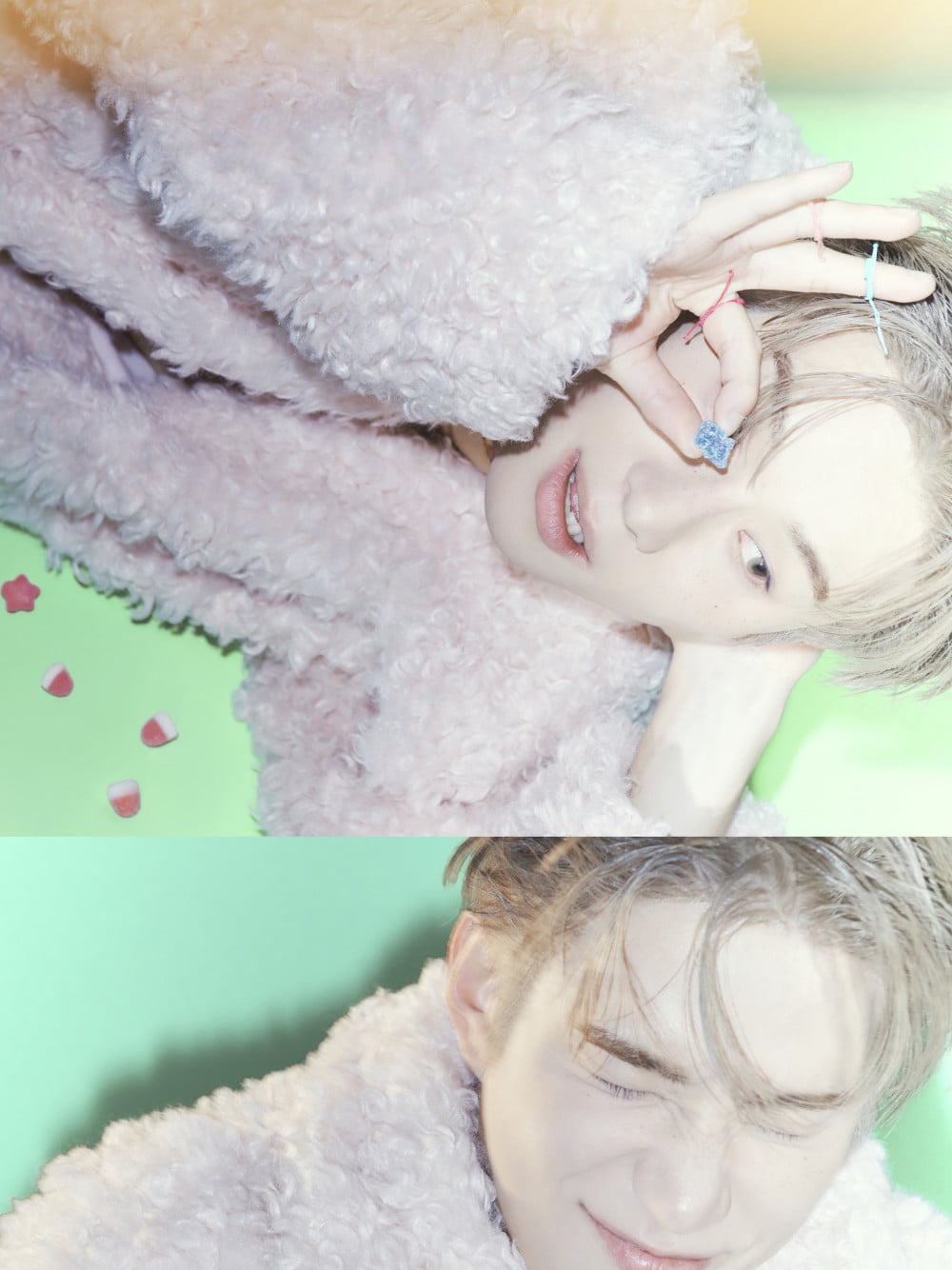 Just as announced, the singer released new teaser photos for his upcoming single 'SUGAR.' In the teasers released on November 26 at midnight KST, Jungwoo showcases handsome visuals and playful charms. In each photo, Jungwoo enjoys different sweet treats that is filled with sugar.