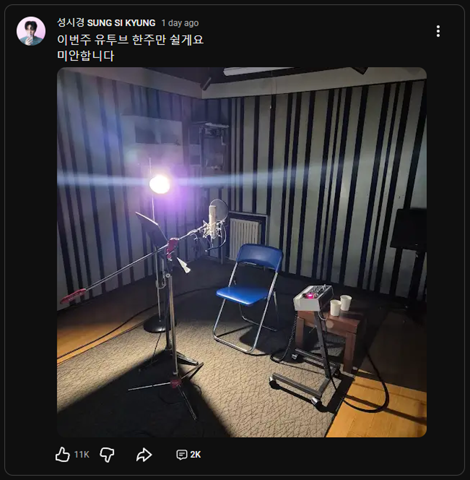 Sung Si Kyung also announced that he would be taking a brief break from his regular YouTube activities.