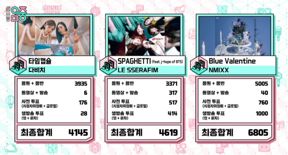 On the November 15th broadcast of MBC’s 'Show! Music Core,' the top contenders for first place were Davichi with "TIME CAPSULE," LE SSERAFIM with "Spaghetti," and NMIXX with "Blue Valentine."
