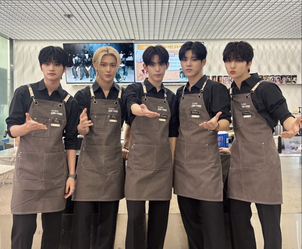 On November 14 KST, NOWZ (Hyunbin, Yoon, Yeonwoo, Jinhyuk, Siyoon) held a one-day café event at Cube Story, located on the first floor of Cube Entertainment’s building, where they hosted a special CSAT support event for students. Even before opening, crowds gathered, and the members spent meaningful time taking orders and serving drinks and desserts directly to visitors.