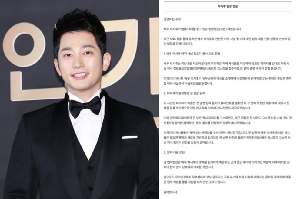 Actor Park Si Hoo provided an update on the ongoing legal action he initiated after rumors spread claiming he was involved in breaking up a married couple.