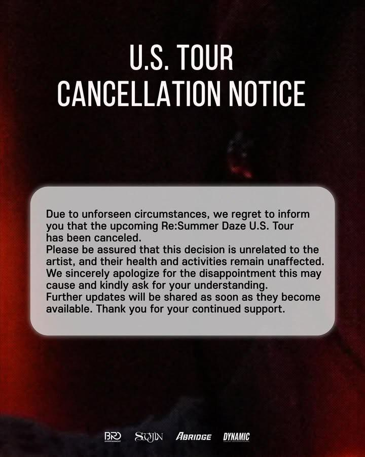 In summer of 2025, Soojin's 'Summer Daze' tour was rescheduled - this time as 'RE: SUMMER DAZE.' But in August, the entire North America leg of the tour was once again suddenly cancelled. Soojin's company again declined to give a specific explanation, only stating that "the decision is unrelated to the artist, and her health and activities remain unaffected."