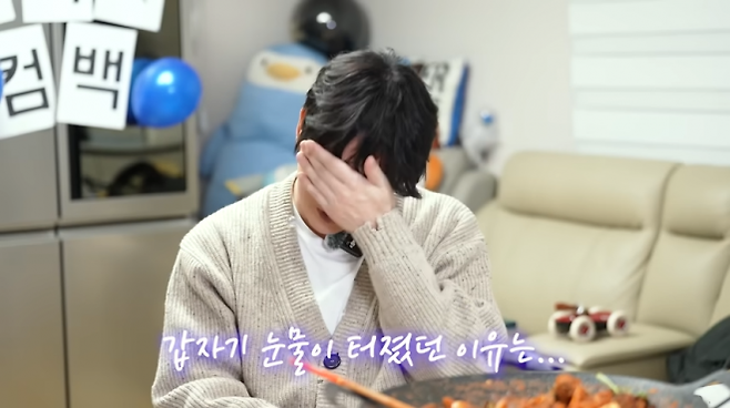 As the fourth track ‘Live in Memories’ played, Sung Si Kyung fell silent, removed his glasses and wiped his eyes. He said, “Sorry. I guess I was upset. The song is just so good,” and continued, “Even if ballads aren’t the center of the market, it moves me to see a junior pour such care into a song. It overlapped with what I’m going through.” Over food and drinks with Kyuhyun, he remarked, “These days, my job is to forget.” He also reflected, “People who do the same work can’t say everything to each other, and looking happy doesn’t mean it’s any less hard.”