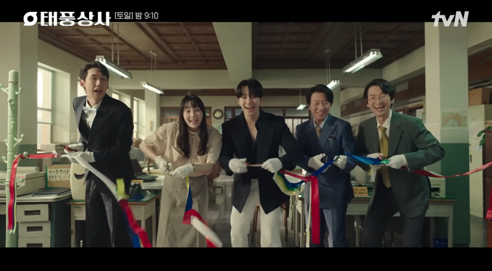 Despite the chaos, Typhoon Company regained momentum. With the surgical glove delivery complete, the team returned to their Euljiro headquarters. Taepoong, Mi Seon, Ko Ma Jin (Lee Chang Hoon), Koo Myung Kwan (Kim Song Il), and Bae Song Joong (Lee Sang Jin) reopened the office, took commemorative photos, and celebrated a fresh start. Tae Poong further strengthened the company’s family-like culture by announcing he would forgo a private CEO office and work alongside all employees.