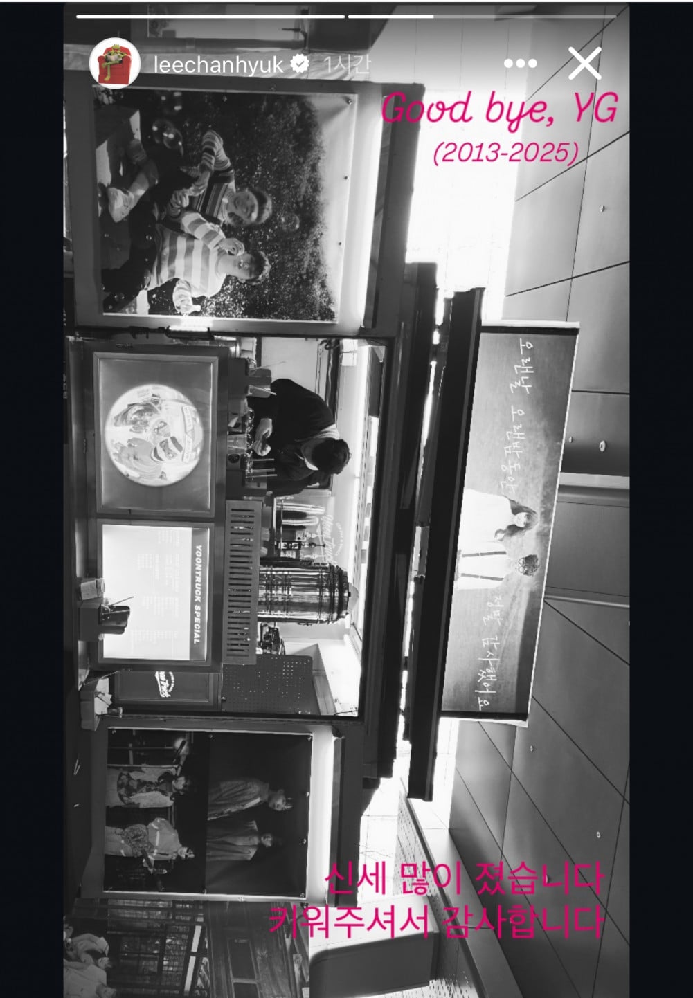 On the 31st, Lee posted on Instagram, writing, “Goodbye YG, 2013–2025. I’m deeply grateful for everything and thank you for helping me grow,” along with a photo of a coffee truck believed to have been sent to YG Entertainment.