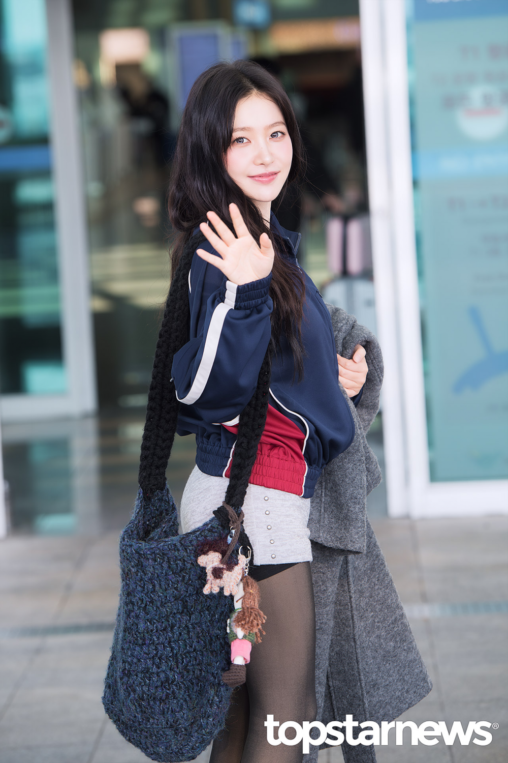 On December 10, Yeri was photographed departing from Incheon Airport. The candid pics of Yeri immediately gained traction across social media, as viewers were stunned by Yeri's beauty. She caught attention for her striking blue contact lenses, wavy black hair, and refreshing makeup style.