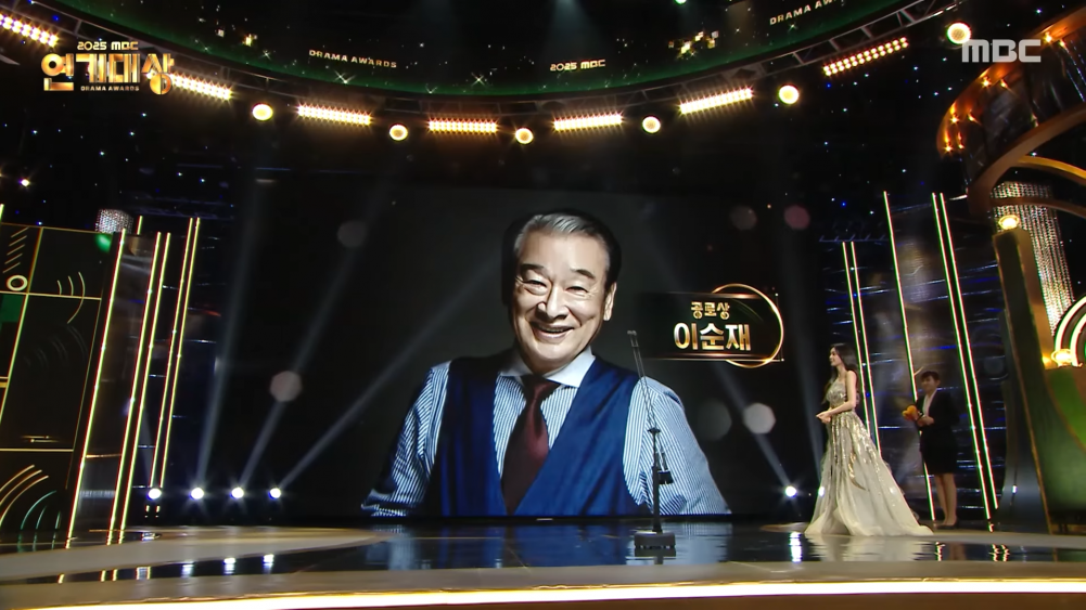 The late Lee Soon Jae, who passed away last month, was posthumously honored with the Lifetime Achievement Award in recognition of his work in 38 MBC productions. A tribute video highlighted his memorable performances, including his role as Yoo Ui Tae, Heo Jun’s mentor, in Heo Jun, as well as the sitcom 'High Kick!.' Accepting the award on his behalf, agency CEO Lee Seung Hee said, “At the end, he could no longer see with his eyes or hear with his ears, but he said he did not want to cause harm to fellow actors or staff. That was the kind of person he was.” She added, “There is something he could not say himself—he loved you all.” At her request, the actors in attendance collectively shouted, “Teacher, we love you,” creating an emotional moment.