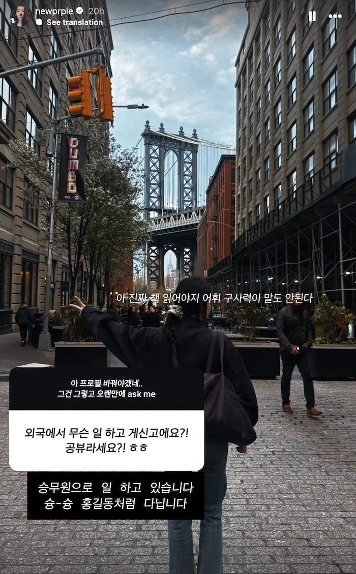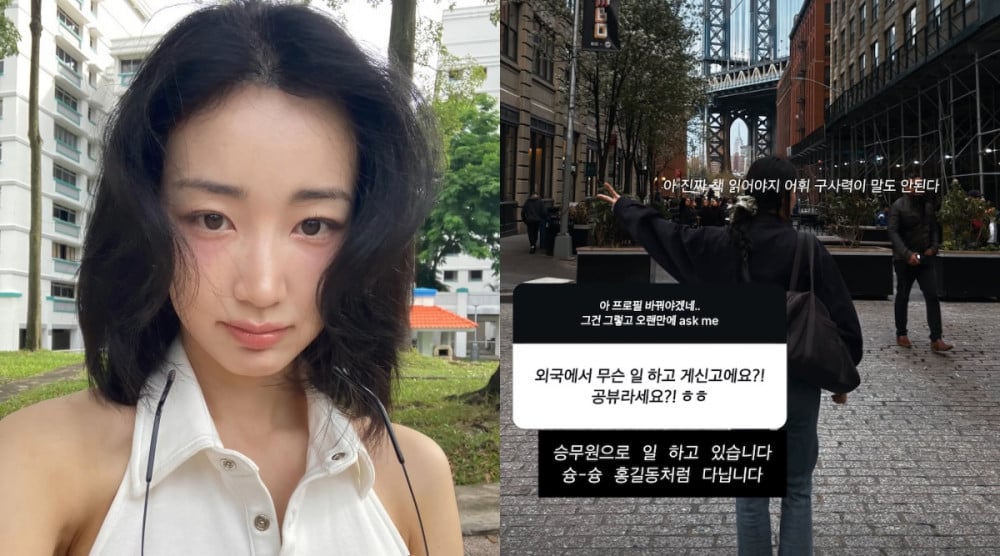 Next, another follower wrote, "What kind of work do you do overseas?! Are you studying?!", to which Hana responded, "I'm working as a flight attendant. I fly around whoosh-whoosh like Hong Gildong."
