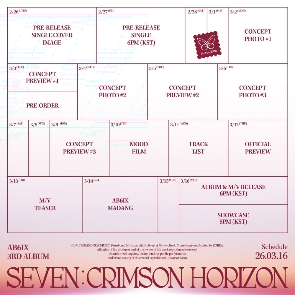 AB6IX’s third full album, ‘SEVEN : CRIMSON HORIZON,’ will be released on March 16.