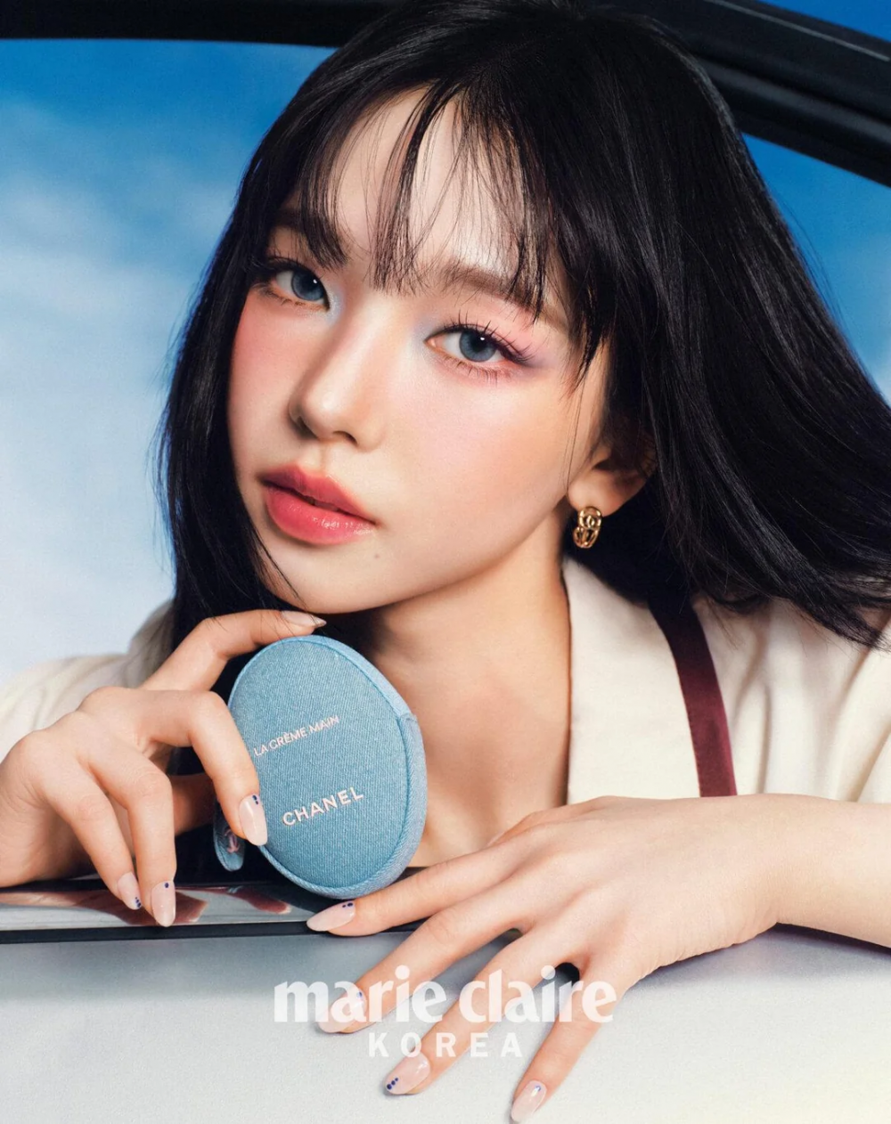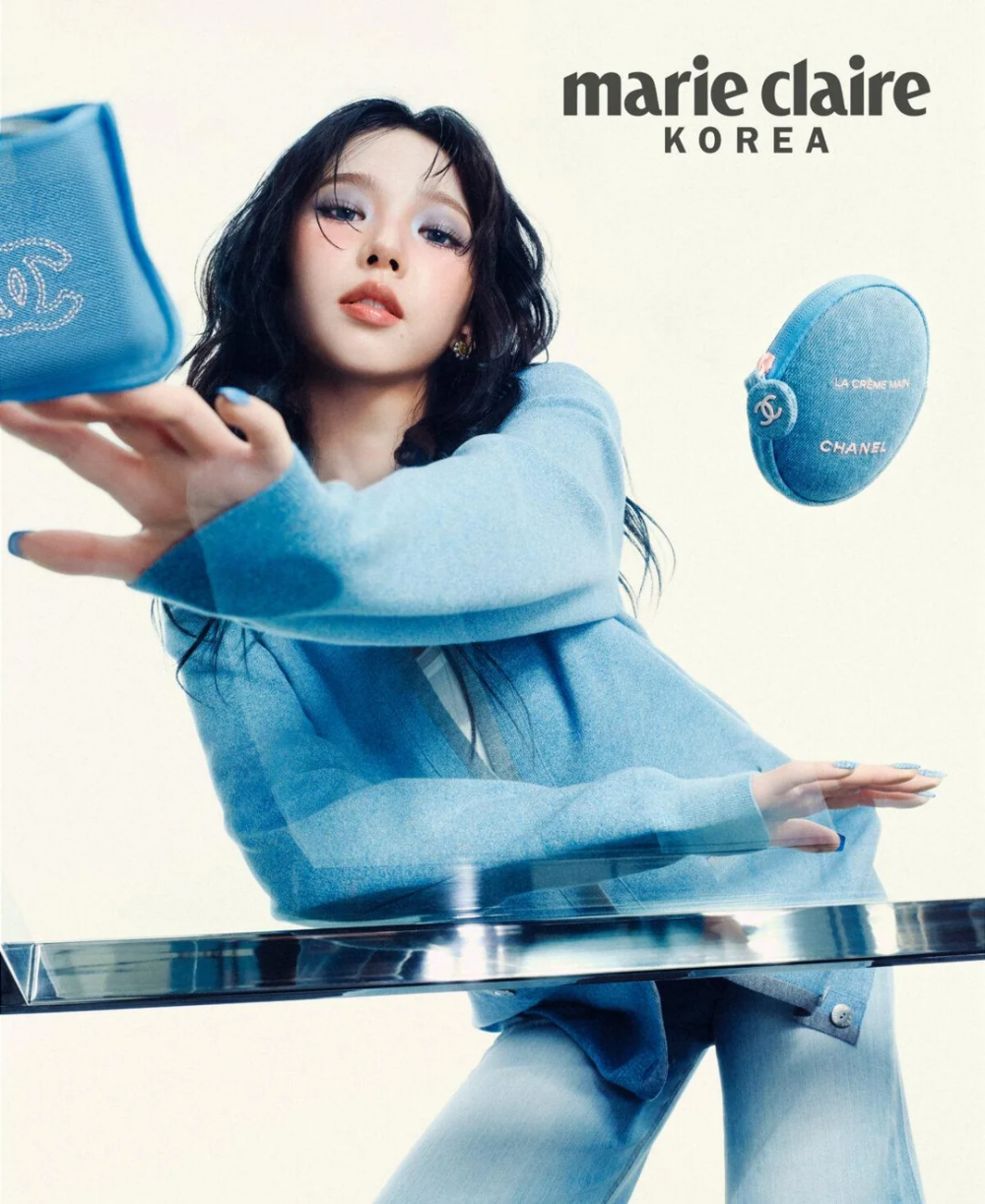 The new pictorial, created as part of a collaboration with Chanel Beauty, features Karina in several stunning new looks. With bright blue eyeshadow and bold denim styling, Karina proves that she can pull off any look.