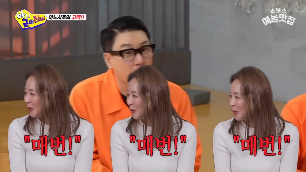 During the broadcast, Lee Sang Min started the conversation about Choo Sang Hoon's wife, saying, “I got to meet Yano Shiho just a few days ago (on another show) and got the chance to ask her if she ever thought about divorce. She replied, 'All the time, all the time, all the time.' What are your thoughts on your wife's response?" Choo Sung Hoon replied, "If she thinks about divorce all the time, all the time, then I must think the same." Tak Jae Hoon chimed in, "Don't act so tough," making everyone in the studio laugh.