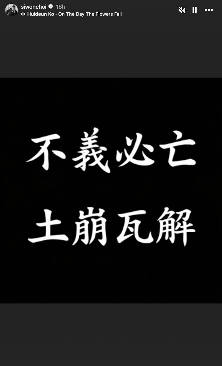 Directly following the ruling, Choi Siwon initially posted the 4-character idiom "Bul-Ga-Sa-Eui (不可思議)" via his Instagram story, which may be translated as "a mystery" or "incomprehensible".