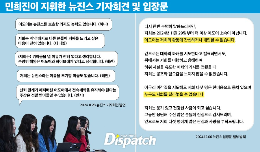 Although statements were issued under NewJeans’ name, Dispatch alleges Min Hee Jin was the ghostwriter.