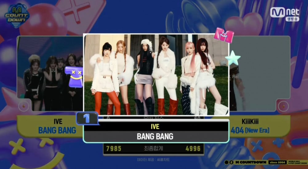 IVE's “BANG BANG”scored a total of 7,985 points, defeating KiiiKiii’s “404 (New Era),” which earned 4,996 points and placed second.