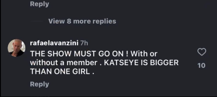 Fans are currently criticizing Daniela's father for his comment, with many calling for him to delete it. Fans have also begun using the hashtag "#StandWithManon" and "KATSEYE is Six" to show their support for Manon.