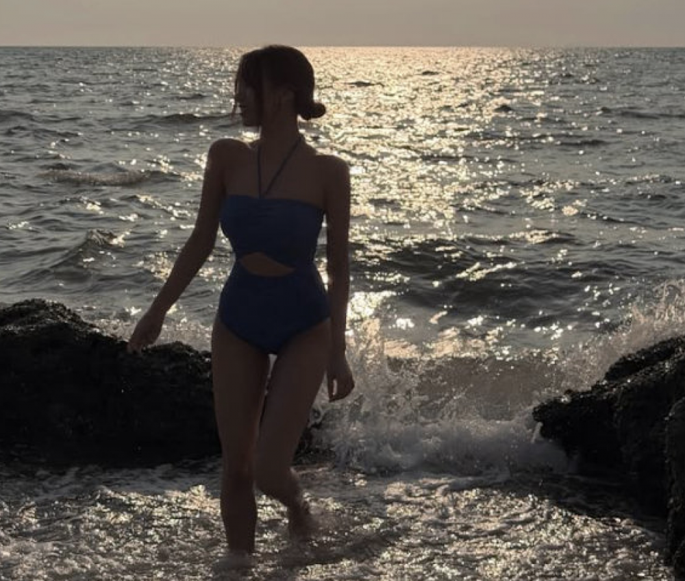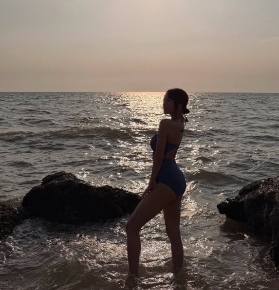 Recently, Natty shared several candid photos taken at the beach on her personal social media. In the images, she poses naturally against a sunset painted sky while wearing a blue swimsuit. The artistic silhouette effect and luxurious mood of the photos immediately caught fans’ attention.