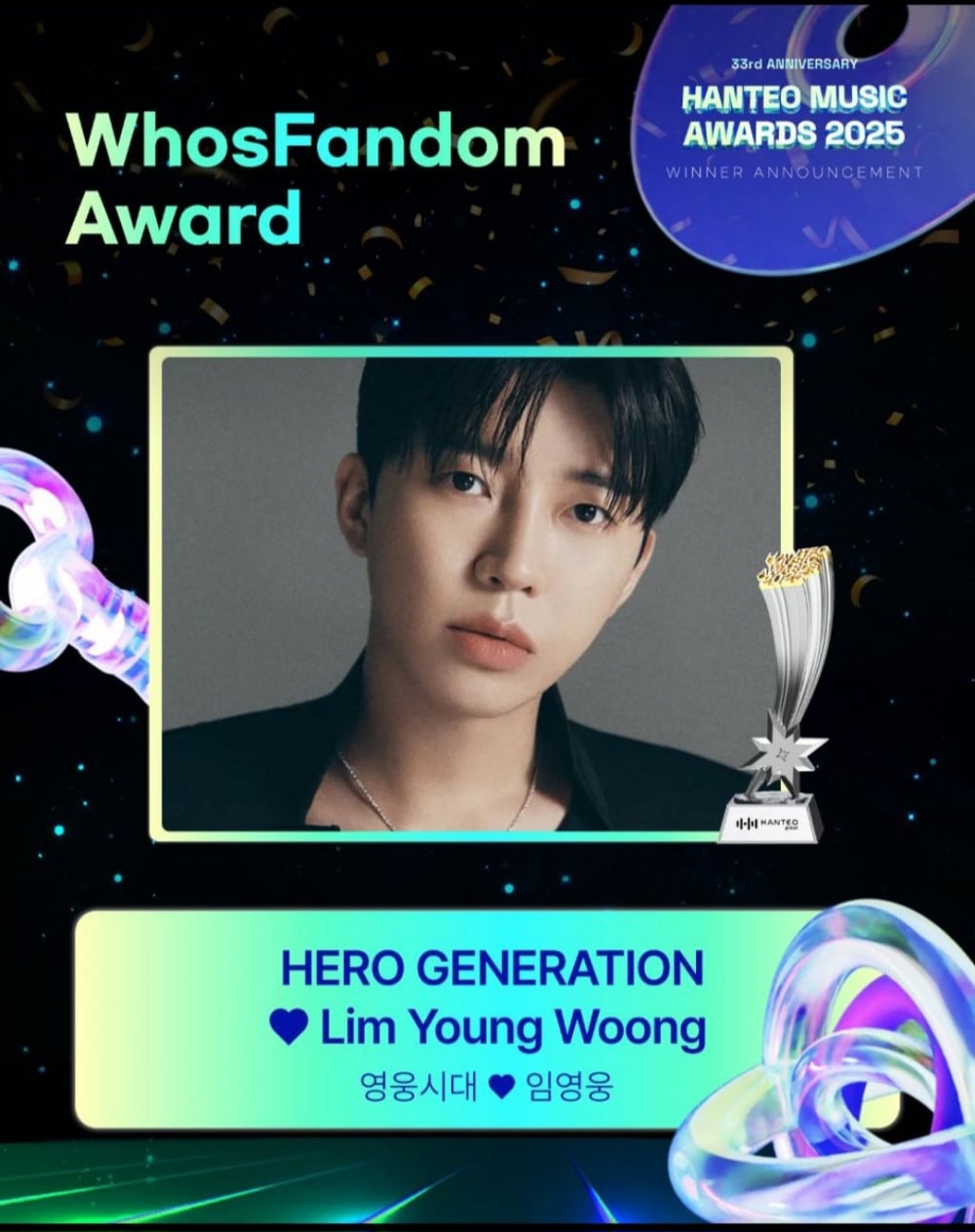 Lim Young Woong proved both his fandom power and OST competitiveness by taking home three trophies at the ‘33rd Hanteo Music Awards 2025.’