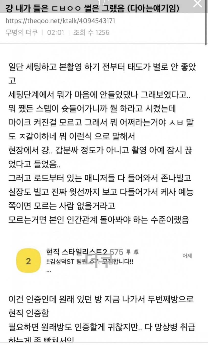 While a floor director at MBC attested to the alleged verbal insults she experienced working with ALD1 earlier on February 13 KST, multiple other industry insiders have now come forward to "testify" about another incident.