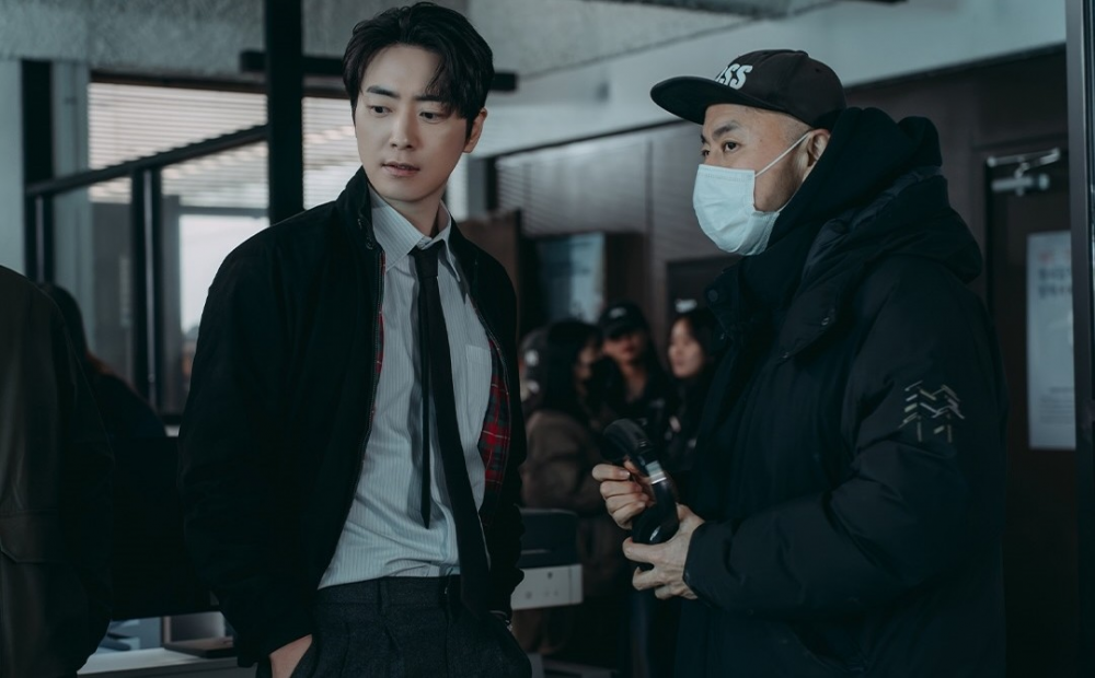 Another still captures Lee Jun Hyuk in deep discussion with director Kim Jin Min, reflecting his dedication to shaping Moo Kyung as a detective who digs relentlessly for the truth despite the case’s complexity. His thoughtful refinement of the character’s inner world enhances the drama’s emotional depth.