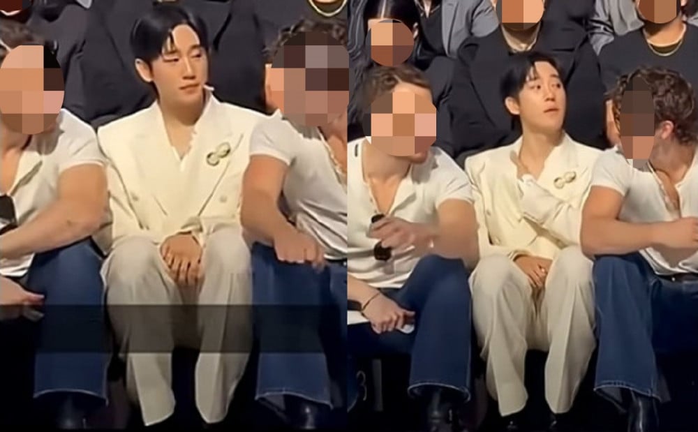 The footage shows Jung Hae In seated between two other men dressed in similar styles. Unlike those next to him, who sat with their legs spread, Jung Hae In remained seated with his legs together, appearing tightly positioned without enough space to properly stretch his legs, which netizens regarded as looking 'somewhat uncomfortable.'