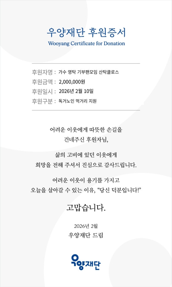 A Wooyang Foundation official noted, “Thanks to the consistent support of Youngtak’s fan club ‘Santak Claus’ during each holiday season, many seniors are able to enjoy a warmer holiday. Supporting them with healthy, eco-friendly rice is especially meaningful.”