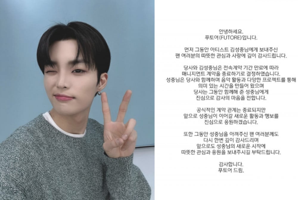 FUTORE officially announced that its exclusive management contract with ARGON's Kim Sungjoong has come to an end, marking the conclusion of their professional partnership.