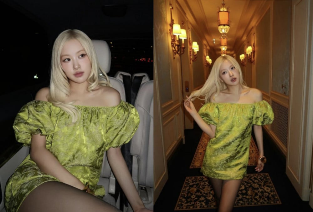 The photos captured Rosé attending the luxury brand’s fashion show in Paris. She wore a striking lime-green off-shoulder mini dress that highlighted her delicate shoulders and deep collarbone line, instantly drawing attention.