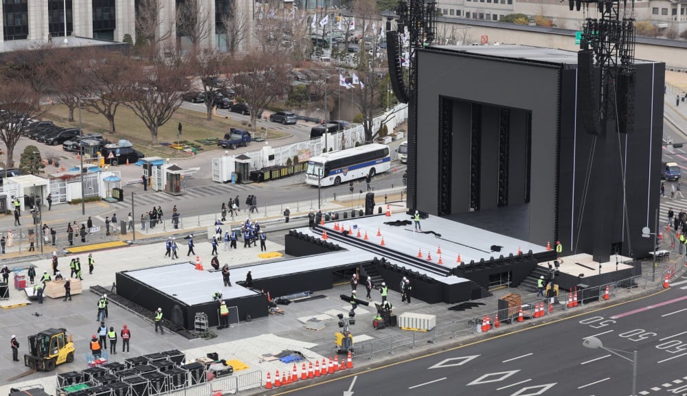 According to a representative from the city of Seoul, the total fee charged to HYBE Labels for the usage of Gwanghwamun Square is a little over 30 million KRW (~ 20,000 USD). Per the city's designation of Gwanghwamun Square as a "public space available to everyone", the usage fee for approximately 1 square meter of the square for 1 hour is 10~13 won. For the comeback show, BTS will be using up around 10,000 square feet for 7 days from March 16 through 22 KST, totaling about 30 million KRW.