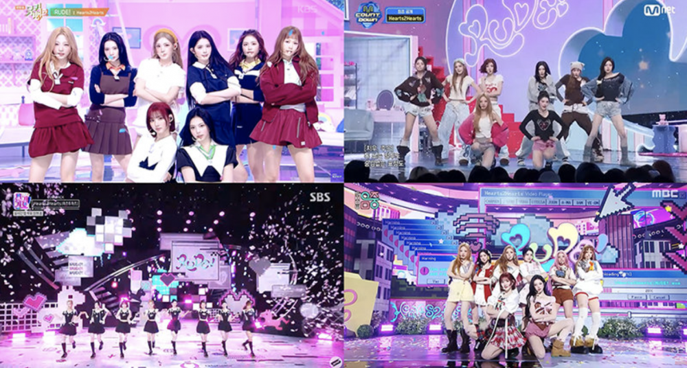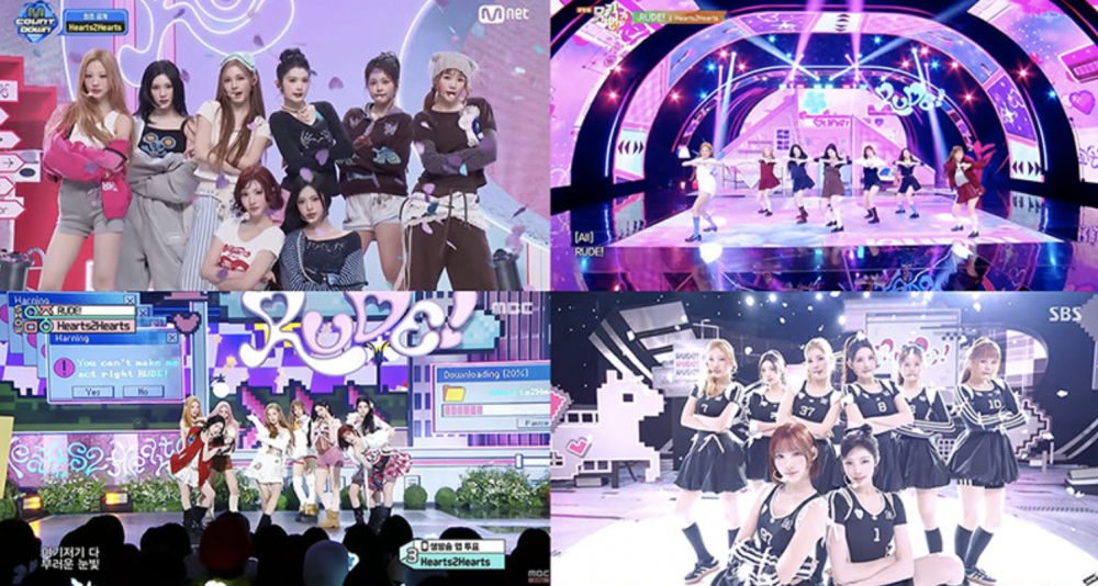 M Entertainment’s eight member group Hearts2Hearts is drawing attention with their music show performances of their new single ‘RUDE!’.