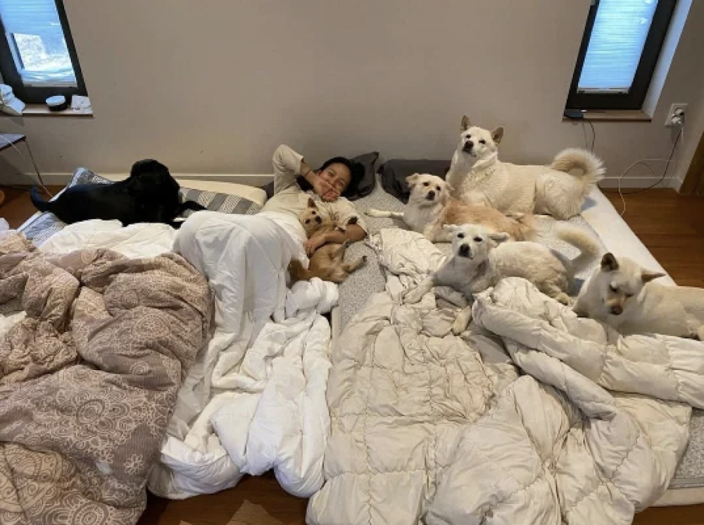The photos showed blankets and mats spread across the floor, with her dogs lying comfortably in different spots. In another image, Lee Hyori is seen lying on the blanket, holding one of her dogs in her arms and enjoying a peaceful moment. It was a simple and unfiltered glimpse into her daily life.