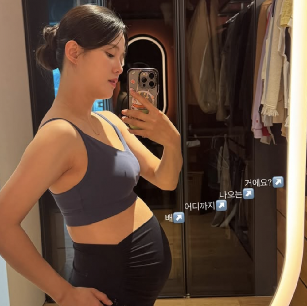 On March 4, Nam Bo Ra posted a mirror selfie on her social media with the caption, “How much bigger is this belly going to get?” In the photo, she is seen wearing a sports top and leggings, naturally showing off her growing baby bump.