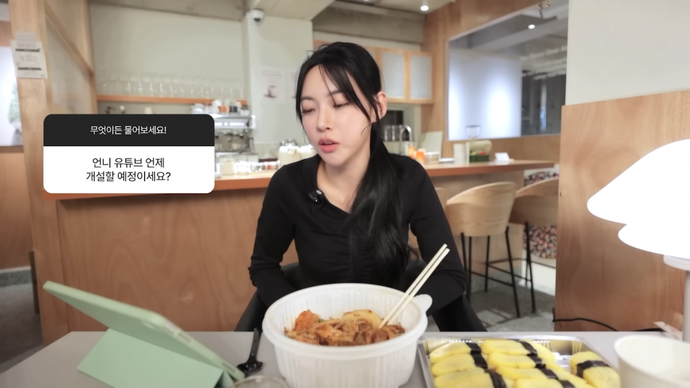 While enjoying a trendy combination of mala xiang guo and egg sushi, she continued responding to questions. “I should eat the way I normally do these days. But how does everyone eat such big bites? This is the first episode on my channel—am I showing too unglamorous a side of myself? I guess I did look a bit unpolished on ‘Single’s Inferno 5,’” she said with a laugh.