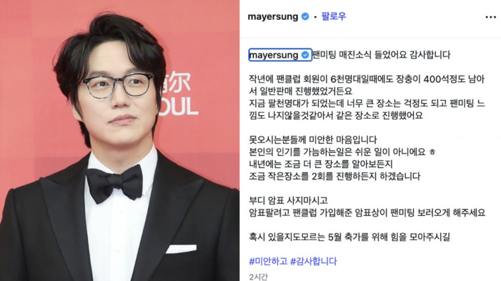 Sung Si Kyung expressed gratitude and concern to fans after his upcoming fan meeting sold out, while also urging them not to purchase illegal resale tickets.