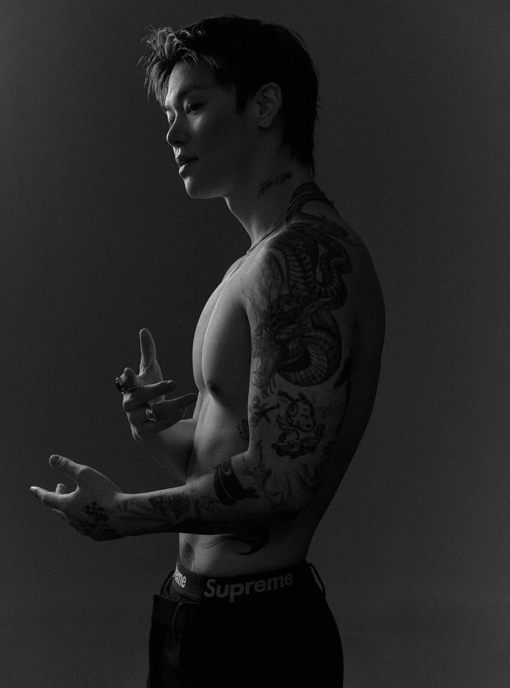 In the black and white photos, Zelo showcased a dramatic transformation in style, ranging from a sleek geek chic look to a bold homme fatale concept with an exposed upper body. The visuals reflect his identity as a pop artist and heighten anticipation for his upcoming activities under the new label.