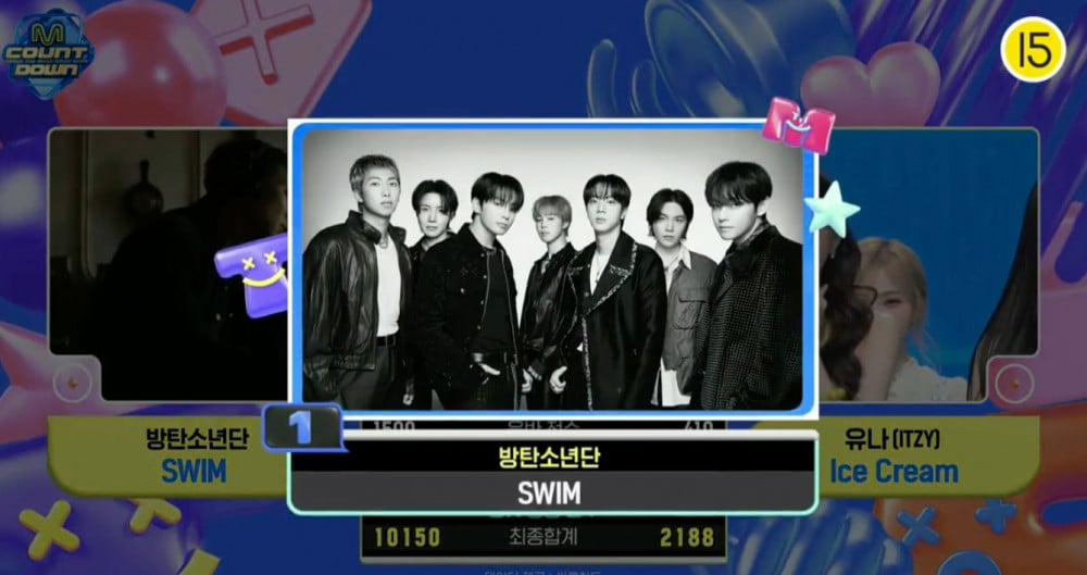 On the April 2 broadcast of 'M! Countdown,' BTS’s “SWIM” and Yuna’s “Ice Cream” were nominated for first place. Following the final tally, BTS claimed the top spot with an impressive total of 10,150 points, while Yuna’s “Ice Cream” placed second with 2,188 points. Notably, BTS maintained their winning streak without appearing on the broadcast that day.