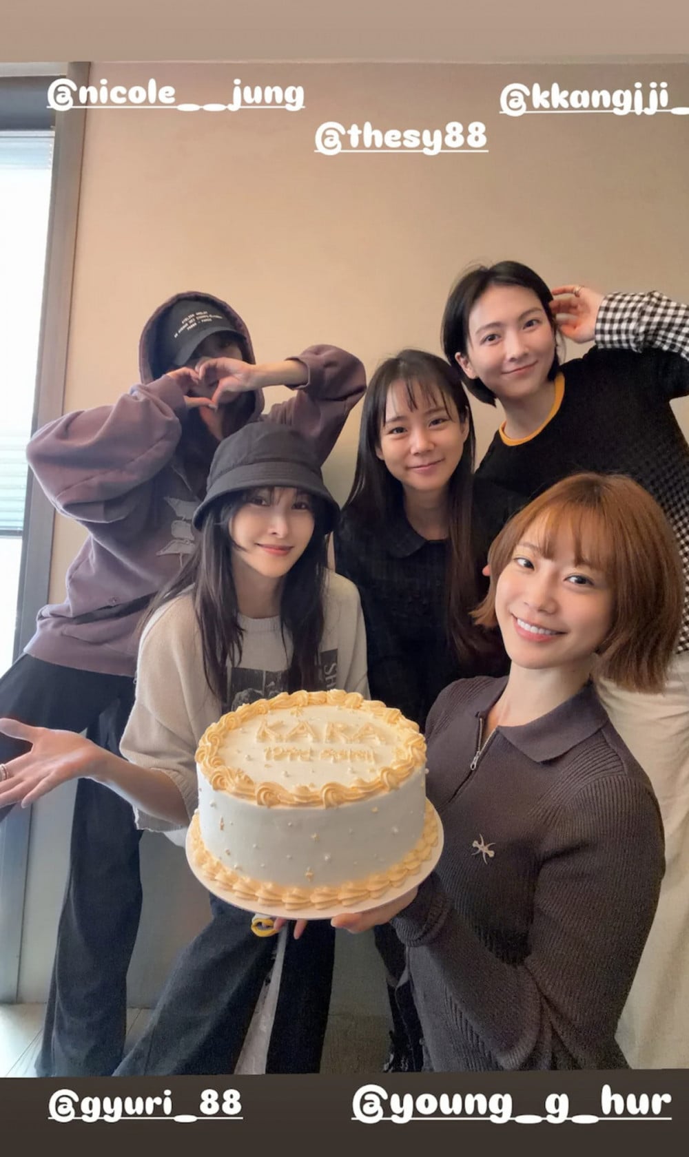 On April 2, member Gyuri shared a commemorative photo on her social media, showing all five members, Park Gyuri, Han Seungyeon, Nicole, Kang Jiyoung, and Heo Youngji, smiling brightly while holding a celebratory cake.