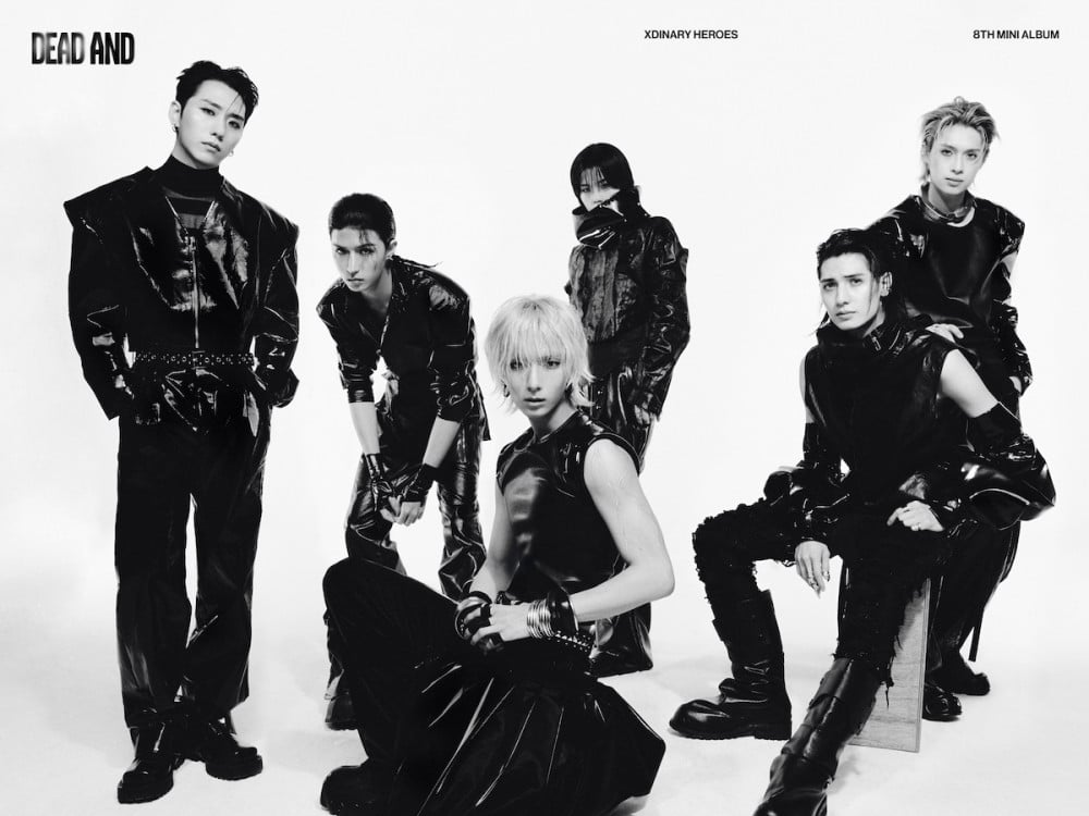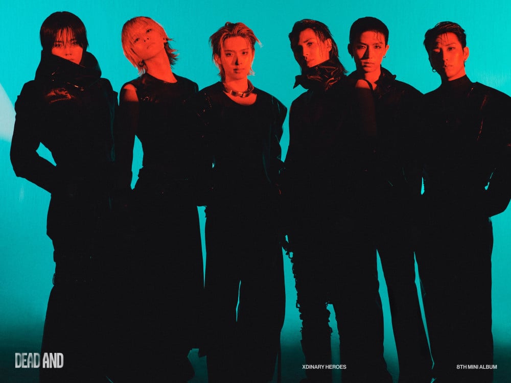In the band's latest set of group teaser images, Xdinary Heroes return to their rebellious punk rock personas in bold, sleek leather looks. The ferocious aura completed by purposeful, dramatic color schemes raises anticipation for the various types of sounds in the band's 8th mini album, 'Dead And'.