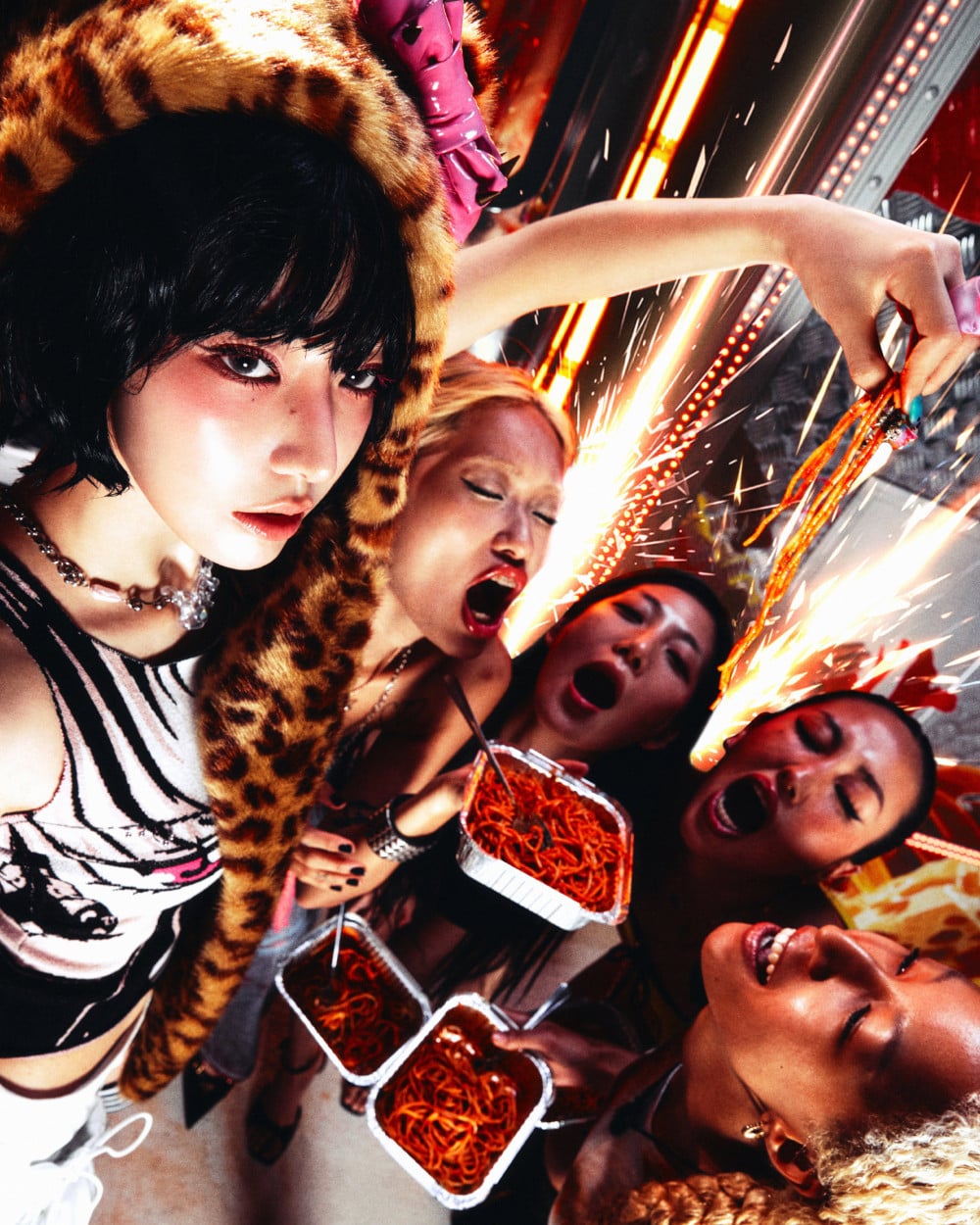For their upcoming 1st single album 'SPAGHETTI,' the members transform into playful cooks and party hosts ready to throw the best night ever, surrounded by pizza, pasta, and glowing neon lights. Titled 'Cheeky Neon Pepper,' this new set of images and videos highlight a confident and daring side of the group, showcasing fresh makeup styles and moods they’ve never tried before.