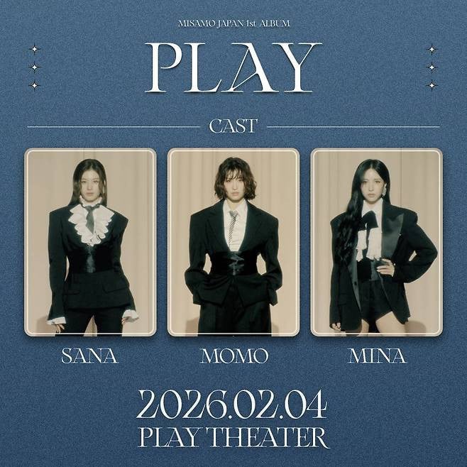 MISAMO—the TWICE unit of Mina, Sana, and Momo—will release their first Japanese studio album ‘PLAY’ on Feb. 4, 2026. JYP Entertainment unveiled a trailer and stills on Nov. 21 via TWICE’s Japan channels, inviting viewers into a theater-themed concept.