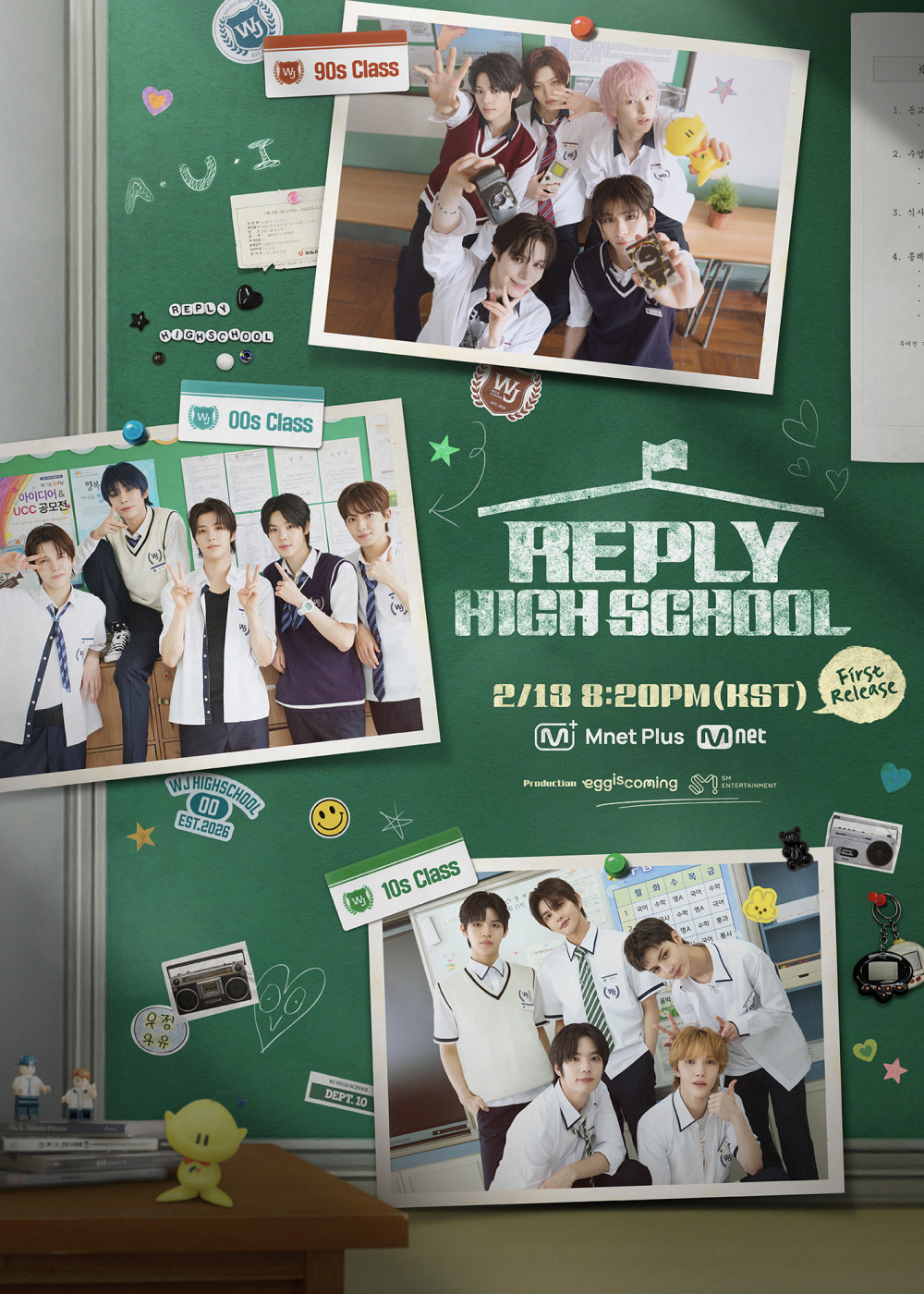 'Reply High School', premiering on Mnet on February 13 at 8:20 PM KST, follows 15 members of SMTR25 as they enroll in an imaginary high school known as 'Ujung High School' and experience the cultures of the 1990s, the 2000s, and the 2010s. The series will be led by Shin Hyo Jung PD at Egg Is Coming. SMTR25 members Hanbi, Songha, Daniel, Hyunjun, Jaewon, Urin, Nicholas, Kassho, Justin, Haruta, Sadaharu, Charlie, Kachin, and Tata will appear on the series.