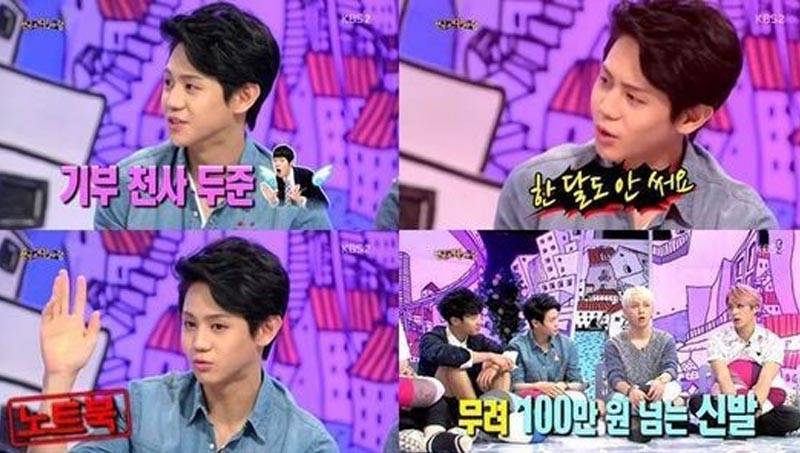 B2ST appeared on the June 9 edition of KBS 2TV's 'Hello' where they brought up the subject of leader Doojoon and his generosity.