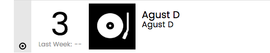 'Agust D' released back in 2016 was listed at number 3.