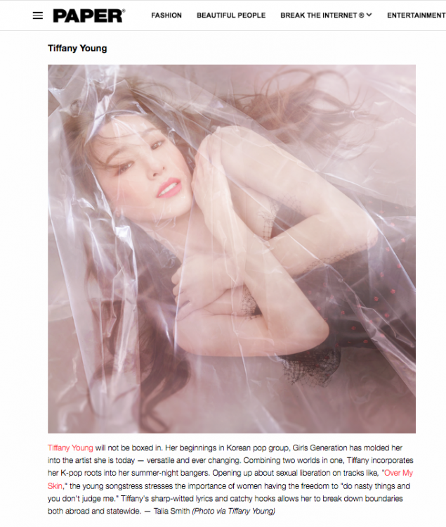 New York City's 'Paper Magazine' has published a new editorial titled, '100 Women Revolutionizing Pop', and that 100 includes K-Pop's very own Tiffany of Girls' Generation!