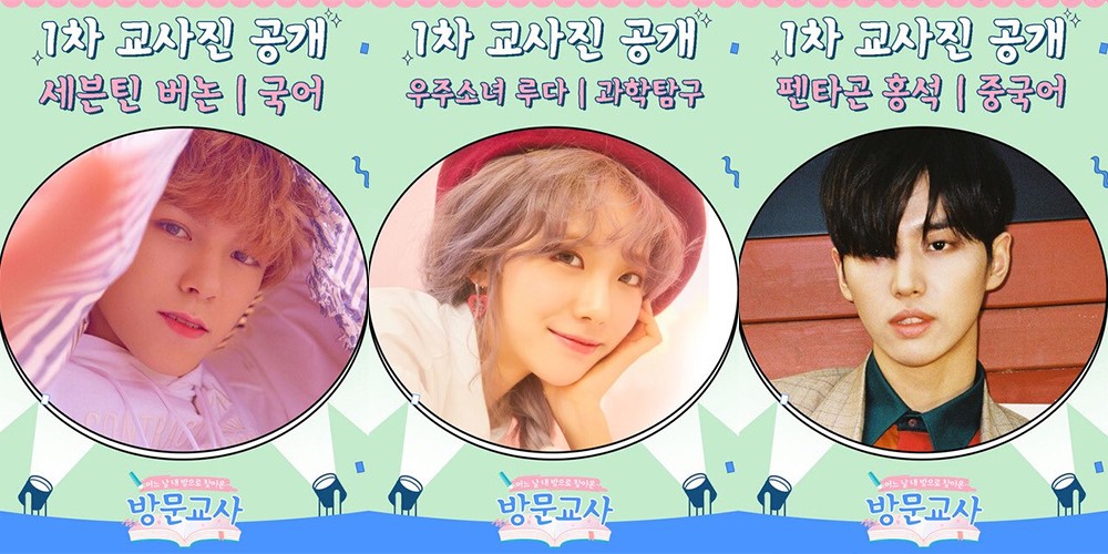 'Visiting Teacher' features celebrities as tutors who teach lucky students 1-on-1. They will be helping students not just with their studies, but also give advice in life. The first lineup includes Seventeen's Vernonwill be teaching Korean, Don Spikewill be teaching social studies, Microdotwill be teaching mathematics, Cosmic Girls' Ludawill be teaching science, and Pentagon's Hongseokwill be teaching Chinese.
