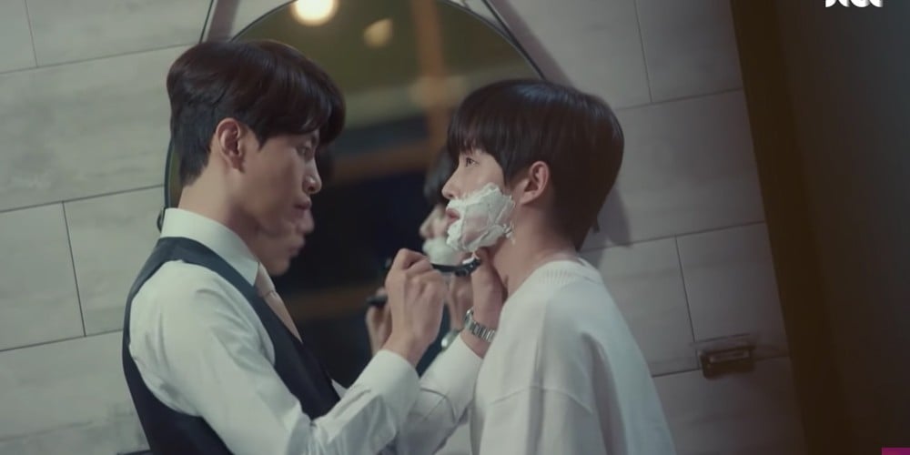 Because Han Se Gye is normally a girl, she seemed to be struggling with shaving her male face. Then, the male lead Seo Do Jae, played by Lee Min Ki, stepped up and offered to "teach" Se Gye how to shave.
